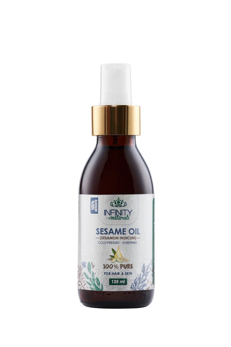Nourish your hair and skin with the rich, natural care of 100% Pure Sesame Oil by Infinity Naturals. This oil is Cold-Pressed and Unrefined to preserve all its essential natural properties and powerful antioxidants. The 125 ml bottle features a “100% Authentic” formula specifically designed for both hair and skin care. It effectively hydrates the scalp, enhances hair shine, and protects the skin from dryness, making it the perfect choice for a healthy, natural glow.