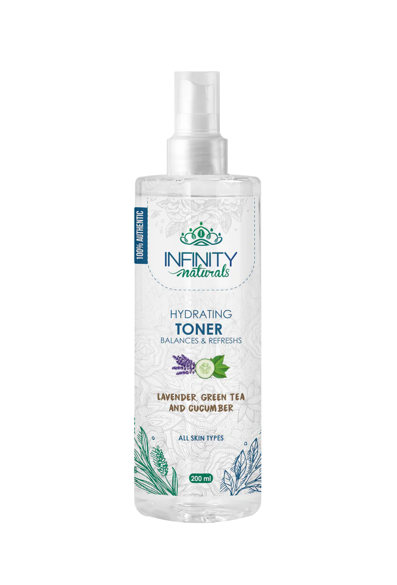 Give your skin instant hydration and perfect balance with the Hydrating Toner by Infinity Naturals. This toner features a unique formula that combines Lavender, Green Tea, and Cucumber, natural ingredients that work together to gently balance and refresh the skin. Designed to be suitable for all skin types, it helps purify pores and remove residual impurities while maintaining skin moisture and softness. It comes in a 200ml spray bottle for easy daily application as an essential part of your skincare routine.