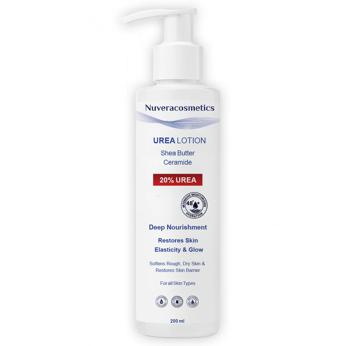 The ultimate solution for severely dry and rough skin. Nuvera Lotion features a rich formula with 20% Urea, fortified with Shea Butter and Ceramide to deliver deep nourishment and intensive hydration that lasts for 48 hours. It effectively works to soften rough areas, restore skin elasticity, and repair the natural skin barrier, giving you perfectly smooth, glowing, and healthy skin.