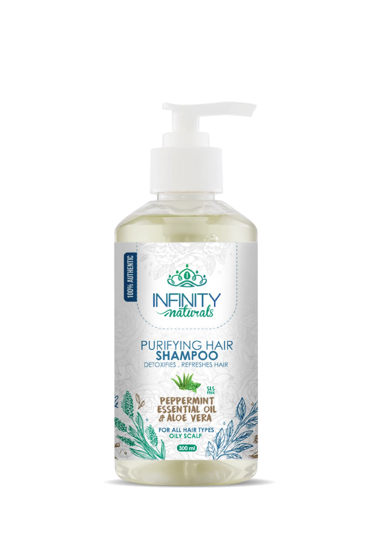 Give your scalp an irresistible freshness with the Purifying Hair Shampoo by Infinity Naturals. This 100% authentic formula is enriched with Peppermint Essential Oil and Aloe Vera Gel, a perfect blend that detoxifies and refreshes both the hair and scalp deeply. The shampoo is SLS-free, making it safe for daily use. It is ideal for all hair types and oily scalps, helping to remove impurities and excess oil while maintaining natural moisture. It comes in a 300ml bottle with a convenient pump for easy application.