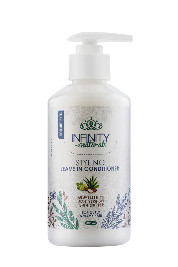 Give your curly and wavy hair the perfect care and definition with the Styling Leave-In Conditioner by Infinity Naturals. This 100% authentic formula is enriched with Grapeseed Oil, Aloe Vera Gel, and Shea Butter, working together to deeply hydrate and simplify styling without rinsing. Specially designed for curly and wavy hair, it provides a soft touch, natural shine, and excellent frizz control all day long. It comes in a 300ml bottle with a convenient pump for quick and easy application.