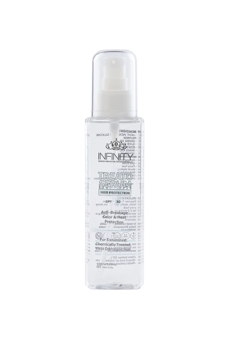 الحماية القصوى لشعرك في زجاجة واحدة! سيروم “Treato” المتطور مصمم خصيصاً للشعر المجهد، المعالج كيميائياً، أو المتضرر من الحرارة. يوفر حماية فائقة من أشعة الشمس بفضل SPF 30، ويعمل كدرع واقي ضد تقصف الأطراف وتلف الحرارة، مما يمنح شعرك نعومة ولمعاناً صحياً مع الحفاظ على حيوية اللون.
