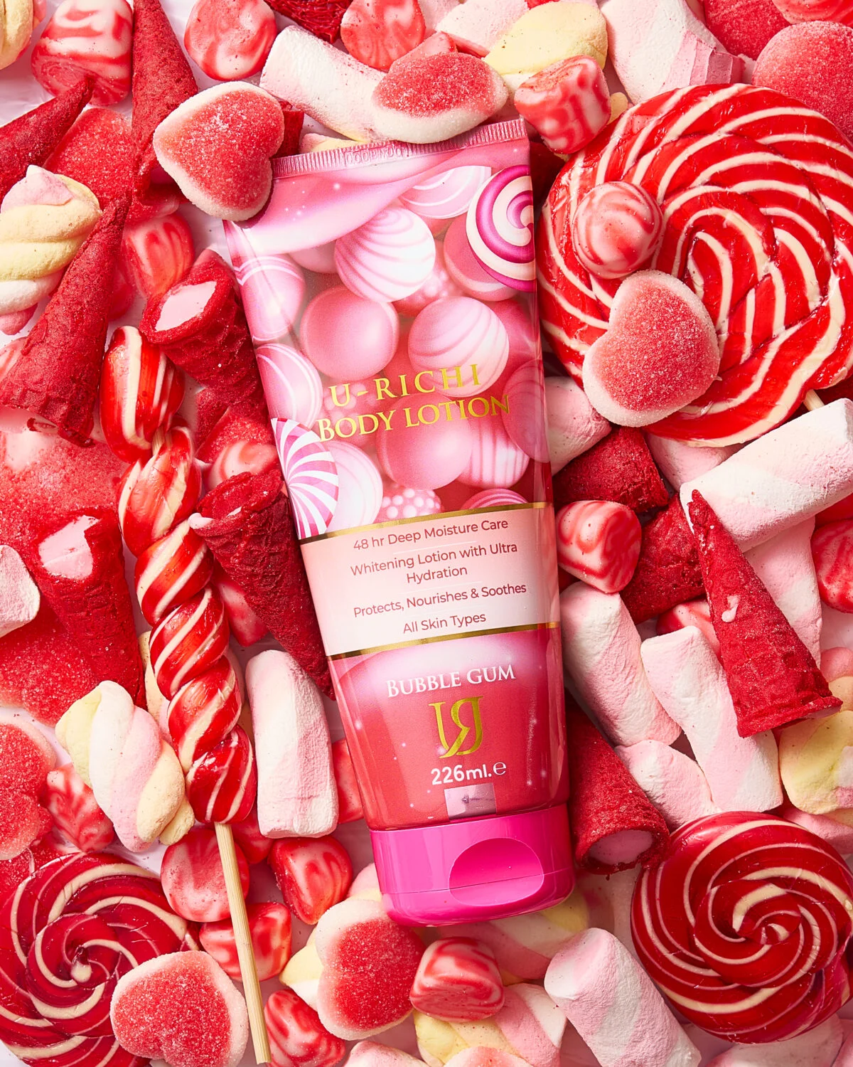 Enjoy a playful and nostalgic scent with U-Richi Body Lotion in Bubble Gum. This lotion delivers deep moisture and hydration that lasts for up to 48 hours, keeping your skin incredibly soft. Its advanced formula is designed to whiten and nourish the body while providing essential protection and soothing care. Suitable for all skin types, it leaves your skin with a radiant glow and a sweet, long-lasting fragrance.