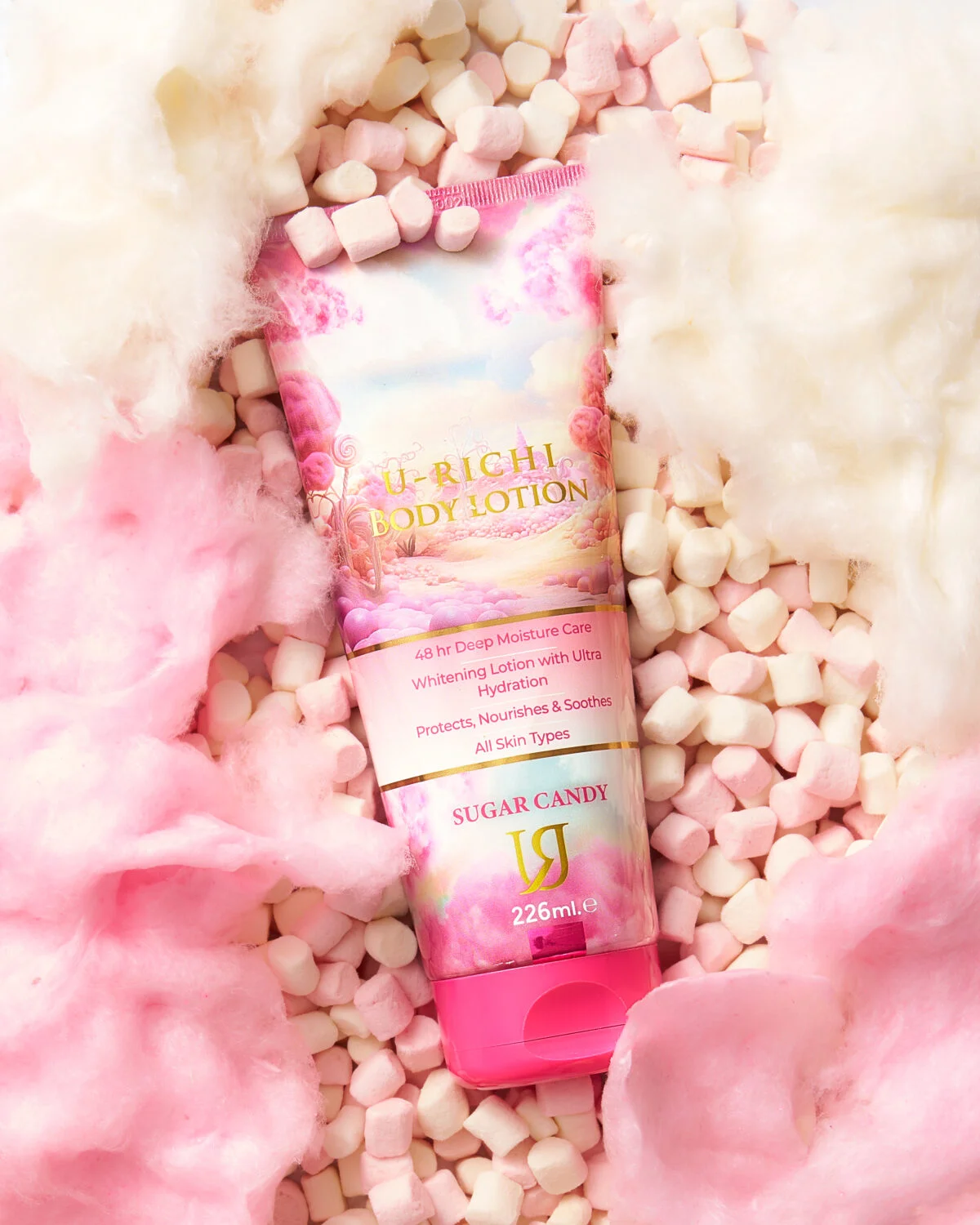 Enjoy a playful and delightful scent with U-Richi Body Lotion in Sugar Candy. This lotion provides deep moisture and ultra-hydration that lasts for up to 48 hours, leaving your skin feeling incredibly soft. Its advanced formula not only moisturizes but also works to whiten, nourish, and soothe your skin. Lightweight and suitable for all skin types, it gives your body a radiant look and a sweet, long-lasting fragrance.