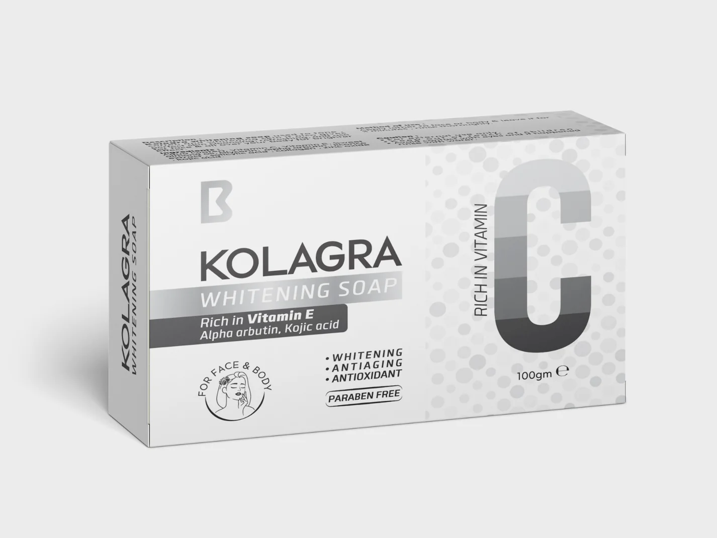 Give your skin a natural glow and superior cleanliness with the Whitening Soap from Kolagra in a 100 gm size. This soap features a rich formula of Vitamin C and Vitamin E, along with Alpha Arbutin and Kojic Acid, making it perfect for brightening skin tone and anti-aging. It acts as a powerful antioxidant to deeply purify both face and body and is completely paraben-free to ensure safe and effective care for all skin types.